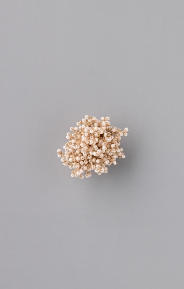 極細の糸とビーズで編まれ、優しいシルエットと軽やかな肌触りが特徴。