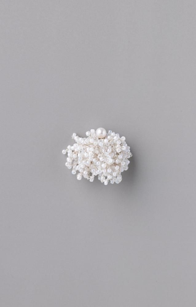 極細の糸とビーズで編まれ、優しいシルエットと軽やかな肌触りが特徴。