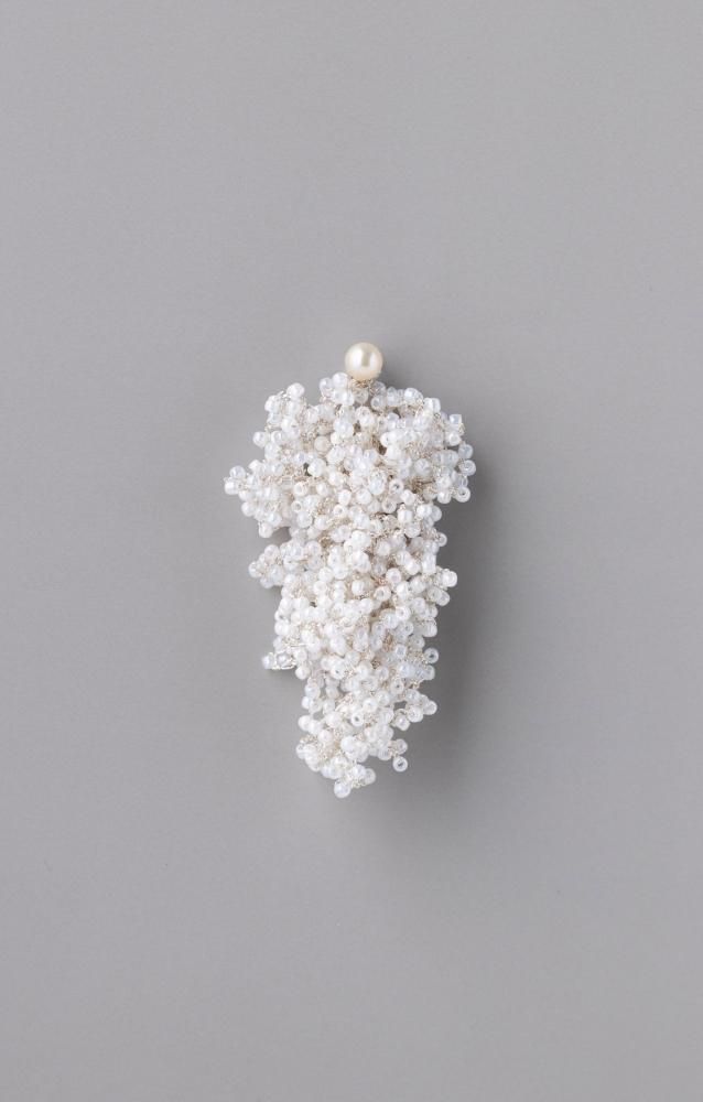 極細の糸とビーズで編まれ、優しいシルエットと軽やかな肌触りが特徴。