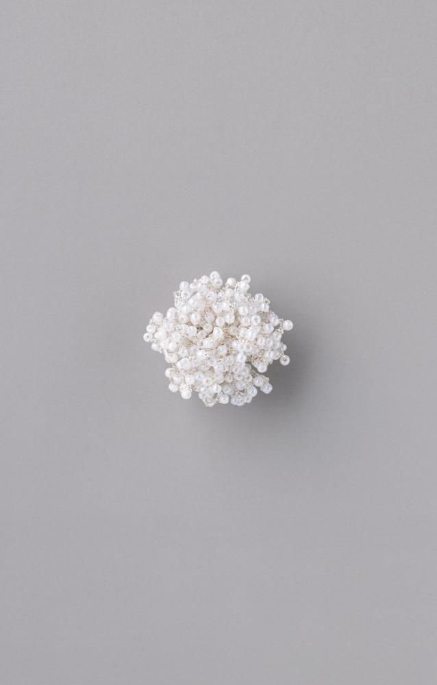 極細の糸とビーズで編まれ、優しいシルエットと軽やかな肌触りが特徴。