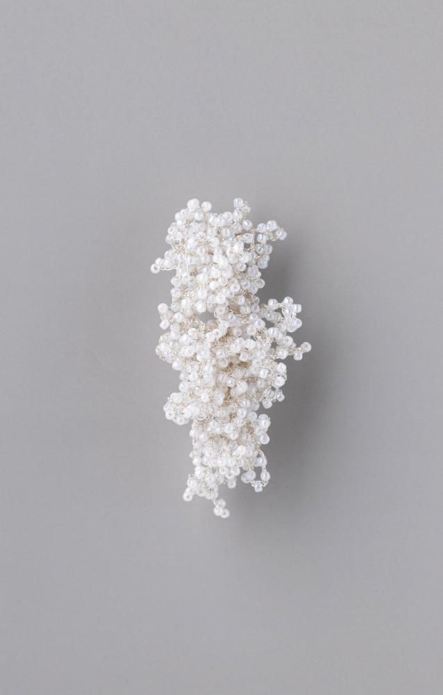 極細の糸とビーズで編まれ、優しいシルエットと軽やかな肌触りが特徴。