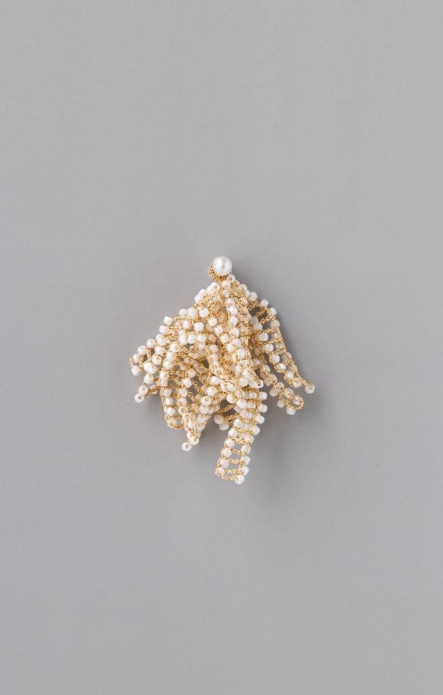 乳白色のビーズとライトイエローの金属の糸で作る