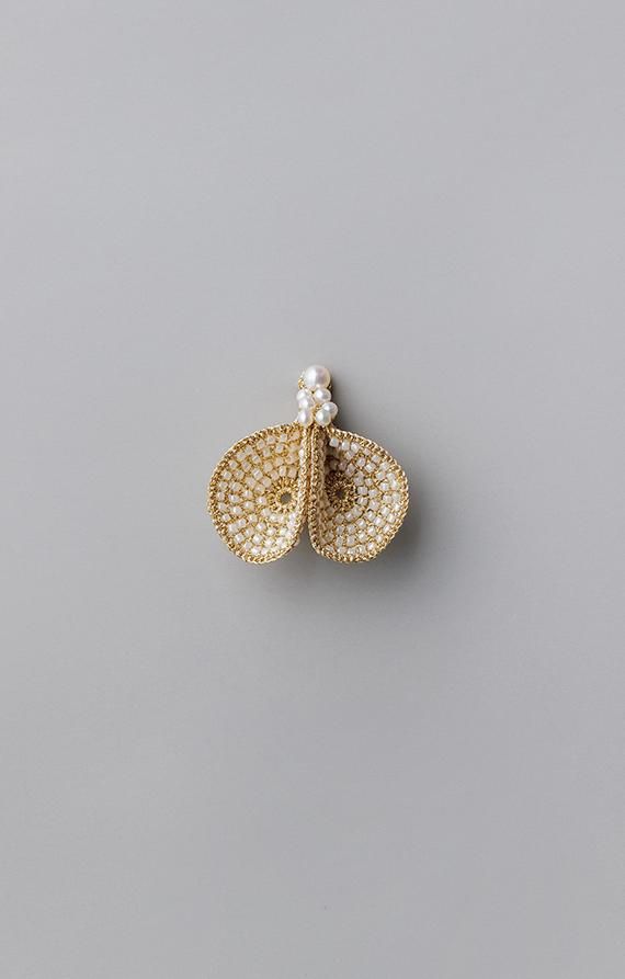 Textile Flower petal/duo ピアス IVORY (受注)※お支払い確認後、約2ヶ月以内に発送