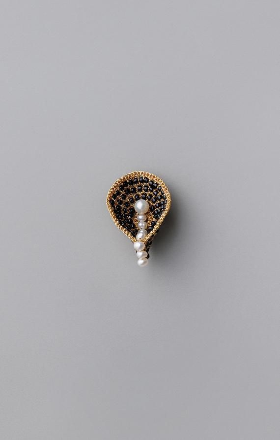 Textile Flower petal/solo ピアス BLACK (受注)※お支払い確認後、約2ヶ月以内に発送
