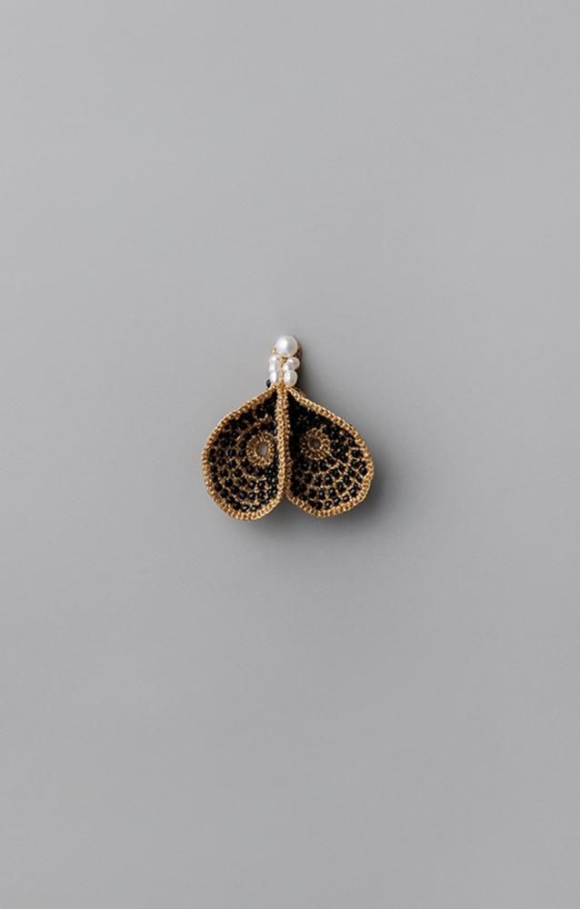 Textile Flower petal/duo ピアス BLACK (受注)※お支払い確認後、約2ヶ月以内に発送
